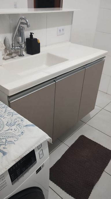 * cozinha e banheiro com móveis planejados