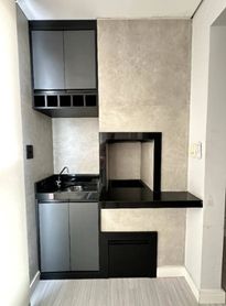 Varanda com Churrasqueira e Fechamento de Cortina de Vidro.