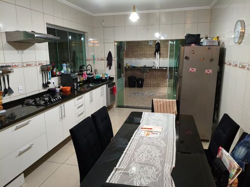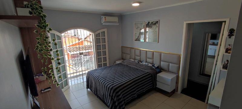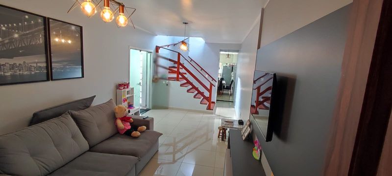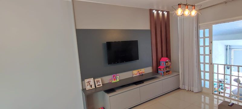 Sobrado com sala ampla, cozinha com planejados, lavabo, área gourmet com churrasqueira a carvão, área de serviço, 3 dormitórios (sendo 1 suíte com varanda e closet), sótão, ar condicionado, 2 vagas de garagem.
